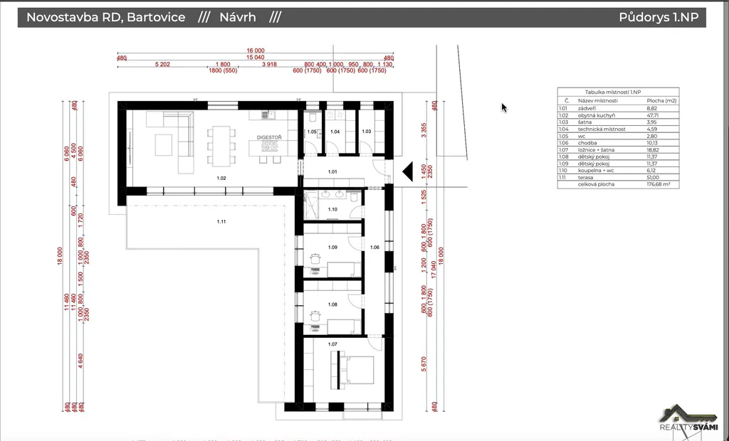 Nabízíme k prodeji novostavbu rodinného domu, ve fázi výstavby, před dokončením kolaudace 2026, umístěnou v klidné části Ostravy Bartovic. Dům disponuje 177m2 užitné plochy, kdy obytnou část tvoří 126m2 a 51m2 terasy, která je otočená na jihozápad, což zajišťuje dostatek slunečního svitu i v pozdějších odpoledních hodinách. Zahrada a umístění terasy nabízí možnost k vybudování bazénu, což sice není součástí projektu, ale je možné po dohodě stavbu bazénu realizovat
