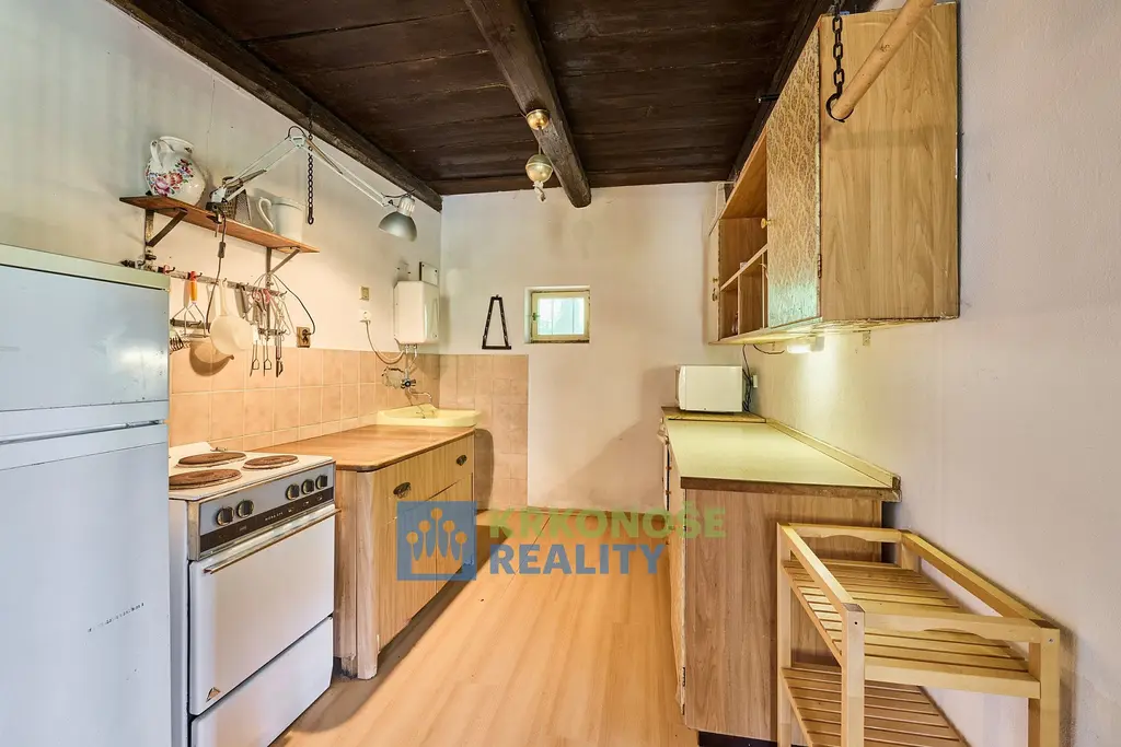 Vlaková zastávka je 1 km od chalupy. Díky budované dálnici D11 (sjezd Trutnov-Poříčí, plánované dokončení 2026) bude dostupnost z Prahy ještě pohodlnější.