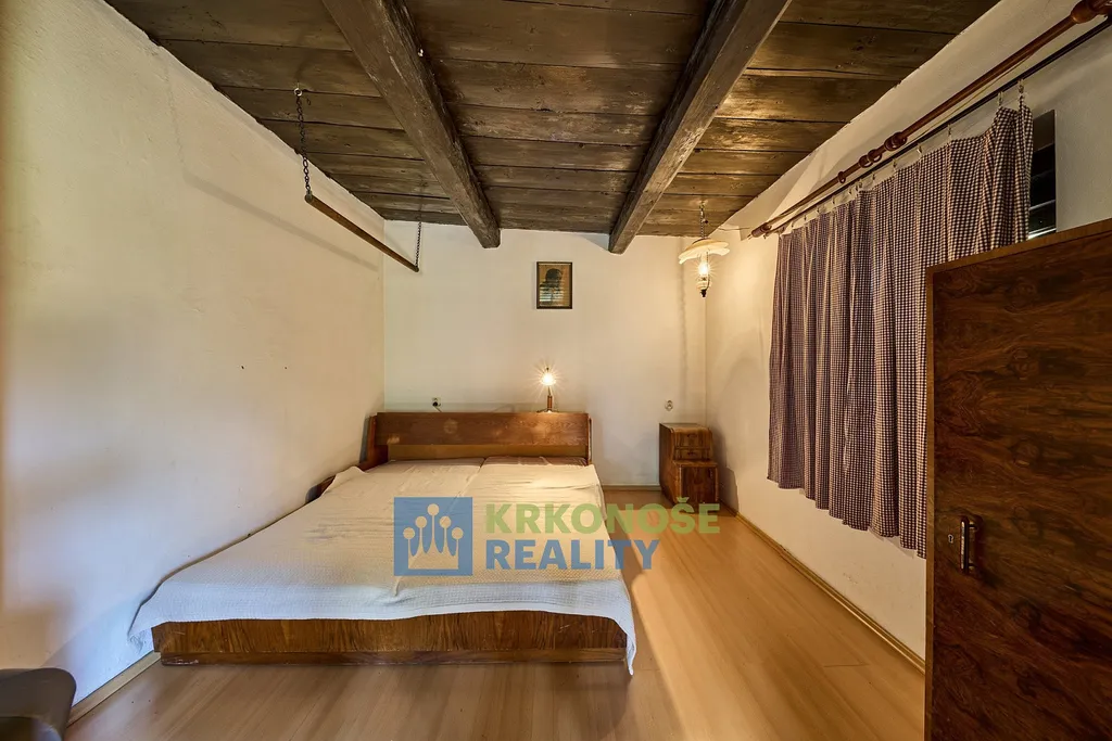 Útulná světnice s krbovými kamny na dřevo, tradičně pojatá kuchyně s původními prvky a spaním pro 4 osoby. Najdete zde i kompletní zázemí (koupelna se sprchou, splachovací WC).