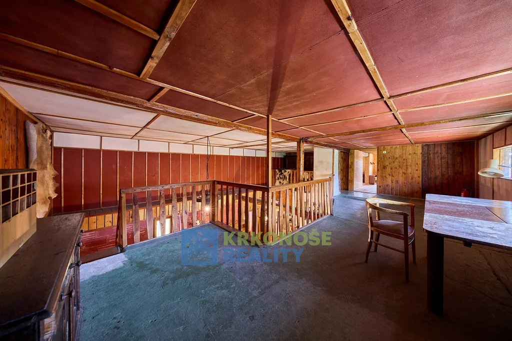 Nad stodolou se nachází nezateplená půda - ideální prostor pro vybudování dalších pokojů nebo ateliéru.