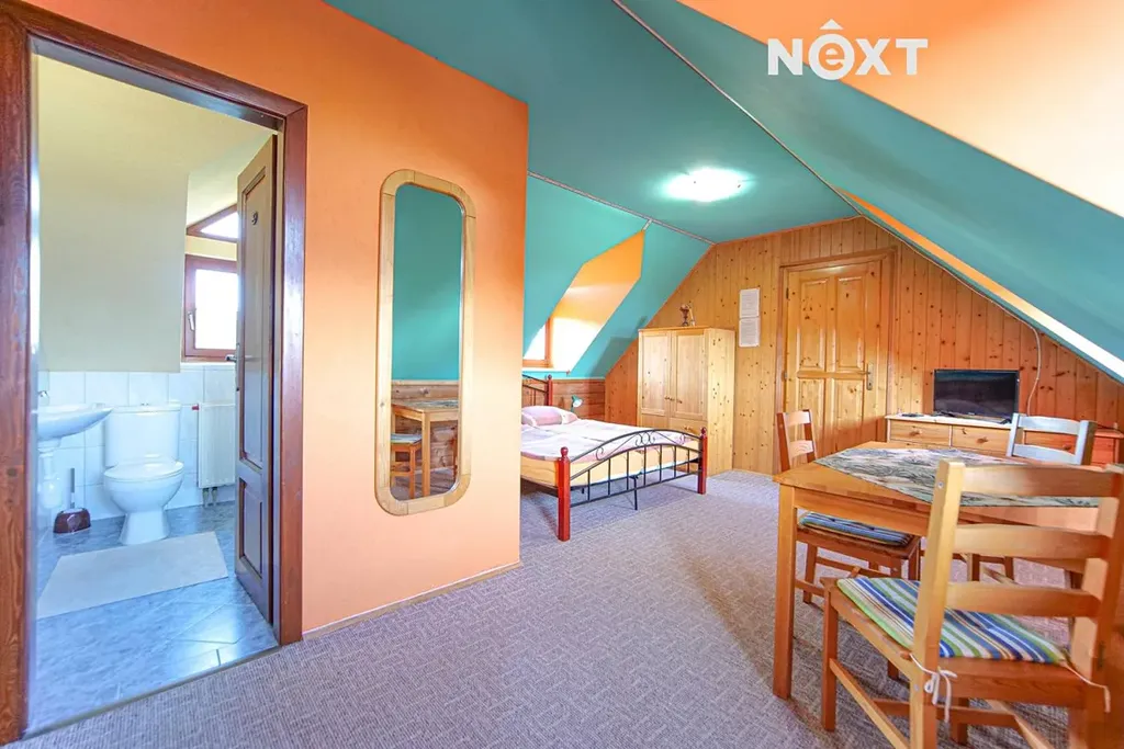 Nabízím k prodeji zavedený pension v blízkosti lipenské přehrady. S velkou péči budovaný a provozovaný rodinný pension se nabízí k prodeji s kompletním vybavením a vybudovanou klientelou. Cihlový dům o dvou nadzemních podlažích je dispozičně řešen: Ve 2. nadzemním podlaží celkem 5 apartmánů, v 1. nadzemním podlaží velkorysý byt majitelů a restaurace se zázemím. Na pozemku se dále nachází pergola pro letní posezení a dřevěný domeček pro zahradní techniku. Obě podlaží spojuje 2x točité schodiště. K pensionu náleží pozemek o celkové výměře 2107 m2, na kterém je možno vybudovat další stavbu. Objekt vedený jako rodinný dům je napojen na obecní vodovod a kanalizaci. Ohřev vody zajišťuje solární systém a případně elektrický bojler, vytápění domu rozvedené do radiátorů fotovoltaické panely (nově instalovány) v kombinaci s tepelným čerpadlem. Na pozemku je vybudován vrt jako druhý zdroj vody. Prodávající si vyhrazují právo na výběr kupujícího. Pro komunikaci uvádějte evidenční číslo zakázky N97828.