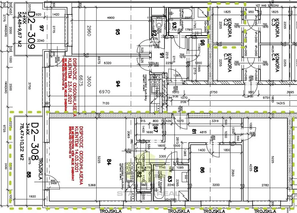 Nabízíme pronájem novostavby bytu 3+kk o užitné ploše 82,6 m2 + balkon 10,22 m2 ve 3.NP novostavby kolaudované koncem roku 2022 ve velmi žádané lokalitě k bydlení, na ulici Janského, v Olomouci Povel. Městská část Povel je charakteristická svou výhodnou pozicí v blízkosti centra a bohatou občanskou vybaveností a perfektní dopravní dostupností MHD, nájezd na dálnici jen cca 6minut jízdy. Byt, orientovaný na Severovýchod, se skládá z obývacího pokoje s kk se vstupem na balkon (východní strana), zádveří, šatny, koupelny s vanou, samostatného wc s bidetovou sprškou a umyvadlem, dvou ložnic a balkonu. Byt spadá svou energetickou náročností do třídy B - velmi úsporná! Mimo jiné je součástí vybavení kvalitní plovoucí podlaha, změna standardních oken z dvojskel na trojskla, sítě proti hmyzu, příprava na klimatizaci (lze doinstalovat) a vnitřní žaluzie a duo rolety v kuchyňské části. Nájem činí 22.000,- Kč + náklady na bydlení cca 3.800,- Kč + elektřina cca 1.500,- Kč dle spotřeby členů domácnosti. Kauce ve výši dvou nájmů, možnost rozložení do dvou splátek. Odměna RK ve výši jednoho nájmu + 21% DPH. Součástí nabídky je také prostorná komora na patře. Lze dopronajmout vnitřní parkovací stání za 1.500,- Kč/měs. Za zmínku také stojí bezbariérový přístup do domu, moderní výtah a skvělá dopravní dostupnost s rychlým příjezdem na dálnici, kompletní občanská vybavenost v dosahu. K nastěhování od 1.4. 2026. Využijte nabídky bydlet v čerstvě novém! U zájemců prověřujeme evidenci exekucí, insolvence, a dluhy na zdravotním pojištění.