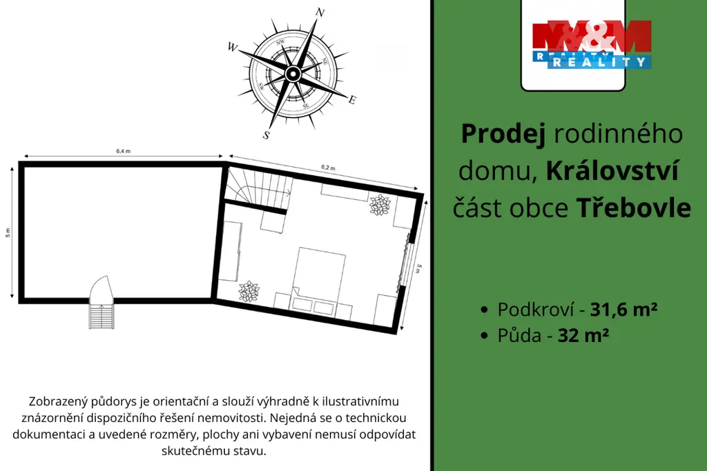 Nabízíme k prodeji samostatně stojící rodinný dům v obci Království části obce Třebovle (k.ú. Hlaváčova Lhota). Hledáte místo, kde si můžete vytvořit domov nebo zázemí pro klidnou rekreaci? Tak právě proto tento dům s dvěma nadzemními podlažími dává novému majiteli jedinečnou příležitost vytvořit si bydlení přesně podle vlastních představ – ať už pro trvalé bydlení nebo rekreační využití. Pozemek o rozloze 525 m² je udržovaný a nabízí dostatek prostoru pro odpočinek, pěstování zeleniny ale i rodinné aktivity. Na pozemku najdete také stodolu, garáž a kůlny které zajištují praktický prostor pro skladování nebo vybudování dílny. Veškerou občanskou vybavenost naleznete v nedalekém městě Kouřim, které je vzdálené přibližně 5 km. Najdete zde mateřskou školku a základní školu, obchody, restaurace, lékaře, lékárny i další služby potřebné pro pohodlné každodenní fungování. Pokud Vás tato nemovitost zaujala neváhejte se na nás obrátit a sjednat si prohlídku.