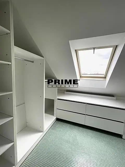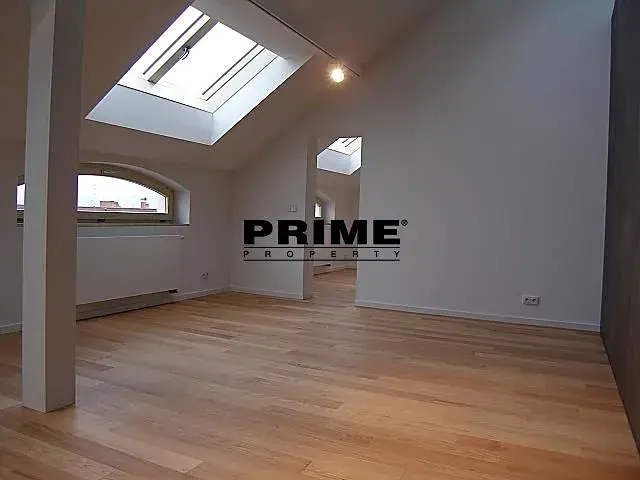 Moderní, 2 ložnicový, nezařízený atypický podkrovní mezonetový byt se 2 koupelnami k pronájmu, 3+1, 130m2, včetně terasy o výměře 10m2, situovaný ve 4. a 5. patře zrenovovaného cihlového domu s výtahem.