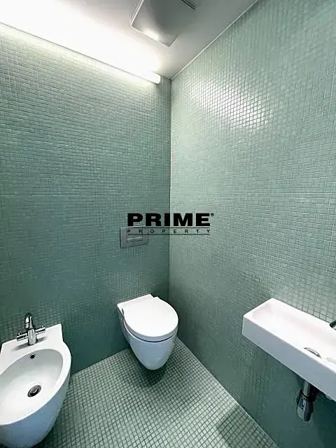 Dispozice dolní části bytu: vstupní hala se šatnou, obývací pokoj, plně vybavená kuchyň se spotřebiči (sklokeramická varná deska, elektrická trouba, myčka a lednice s mrazákem), ložnice s vestavěnou skříní, koupelna (se sprchovým koutem) a samostatné WC. Horní podlaží bytu: prosklená galerie s otevřenou moderní koupelnou (vana, sprchový kout, toaleta a bidet), šatna a menší ložnice s klimatizací a vstupem na terasu.