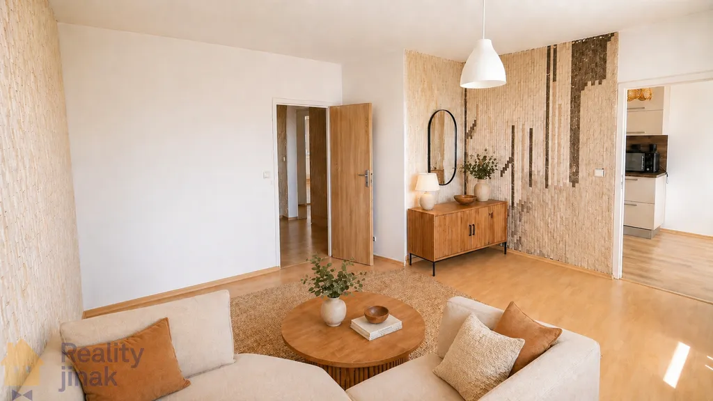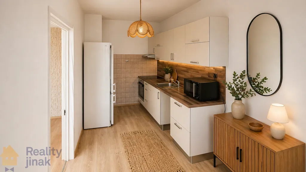 Tento byt je připraven k okamžitému nastěhování. Můžete se těšit na čerstvě vymalované stěny, nové podlahy a moderní kuchyňskou linku (starou pouhé 2 roky), dále zděné jádro a nové dveře. Jeho dispozici je možné nastudovat v přiloženém půdorysu. Byt je velmi světlý díky své orientaci a díky tomu, že má chodbu uprostřed, jsou pokoje neprůchozí. Nabízí se prázdný, tedy připravený pro vaše vlastní vybavení. Pro okamžitý start vám zůstává kuchyňská linka s lednicí a mikrovlnnou troubou a v koupelně pračka. Další vybavení bylo doplněno vizualizací, která vám pomůže snadno si představit, jak by mohl váš nový domov vypadat.