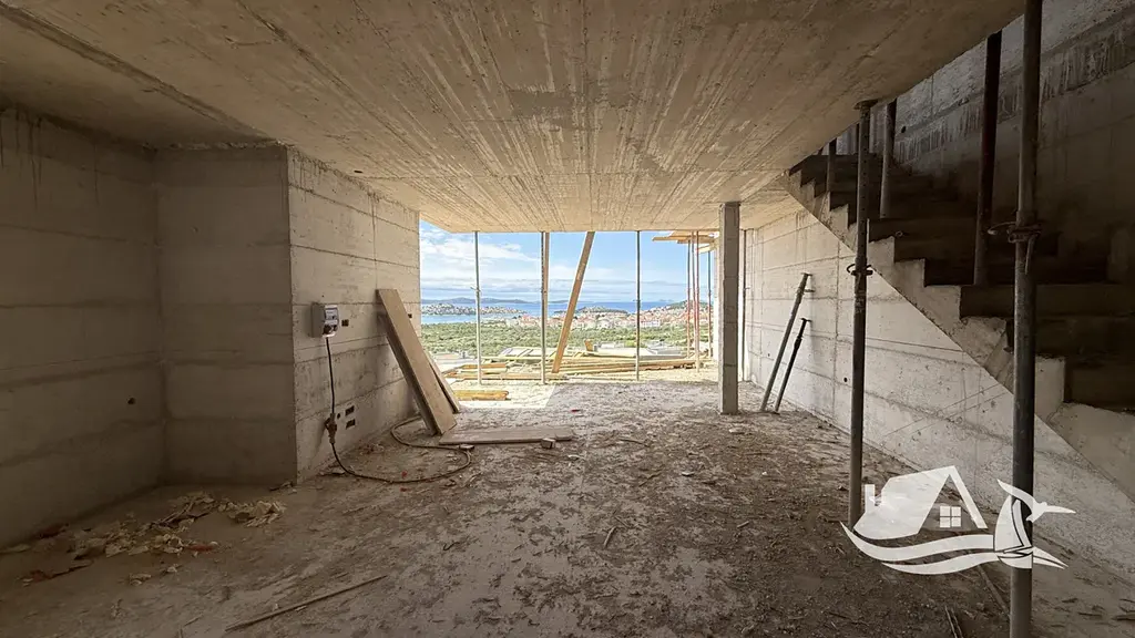 V nové rezidenční části města Vodice vzniká tato výjimečná luxusní novostavba, která spojuje moderní architekturu, vysoký standard provedení a nádherné výhledy na moře. Dům je situován na mírném vyvýšení, pouhých 800 metrů od pláže a přibližně 1200 metrů od centra města, což vytváří ideální rovnováhu mezi klidným soukromím a dostupností všech služeb.