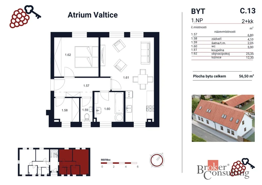 V projektu Atrium Valtice nabízím byt C13 2+kk, který spojuje skvělou lokalitu, nízké náklady a možnost vytvořit si interiér bez kompromisů.