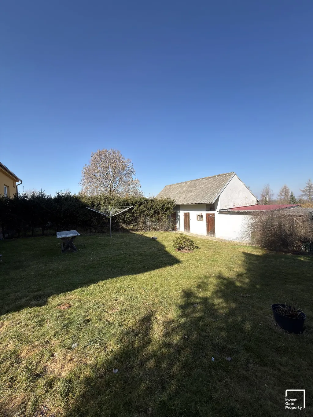 Na pozemku se dále nachází samostatná garáž a sklad o celkové výměře 41m2, které poskytují praktické zázemí pro parkování i uskladnění.