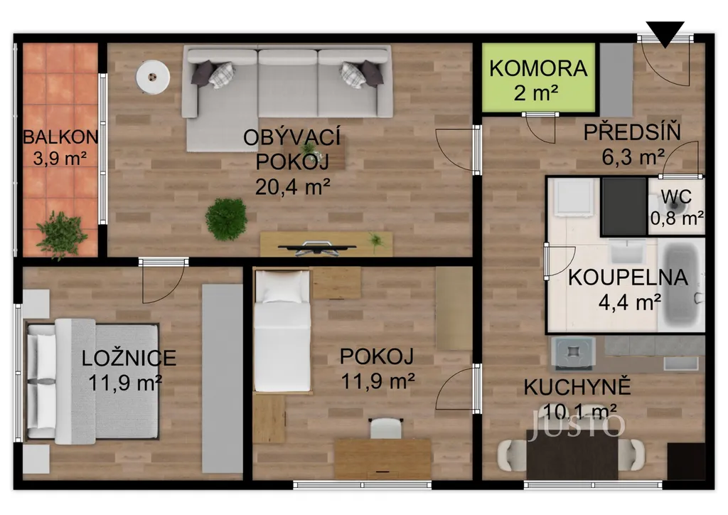 Ve výhradním zastoupení majitele nabízíme k prodeji byt o dispozici 3+1 s užitnou plochou 70 m² a lodžií, nacházející se ve 3. patře panelového domu v klidné části obce Bavorov, Na Sídlišti. Byt je v osobním vlastnictví a je částečně vybavený. Prakticky řešená dispozice zahrnuje prostorný obývací pokoj (20,4 m²) s přímým vstupem na lodžii (3,9 m²), dvě samostatné ložnice (každá 11,9 m²), kuchyni s jídelním koutem (10,1 m²), koupelnu, oddělené WC a komoru. K bytu náleží také sklepní kóje.