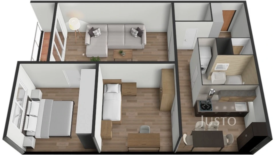 Byt prošel kompletní modernizací / rekonstrukcí – jsou zde plastová okna a dům je zateplen. Ústřední plynové topení s radiátory a centrální dálkový ohřev vody zajišťují komfortní bydlení po celý rok. Panelový dům je vybaven výtahem, což ocení zejména rodiny s dětmi. Vnitřní prostory bytu působí vzdušně a jsou vhodné pro okamžité bydlení i úpravu dle vlastních představ. DO prostoru v chodbě bytu lze umístit šatnu nebo skříň.