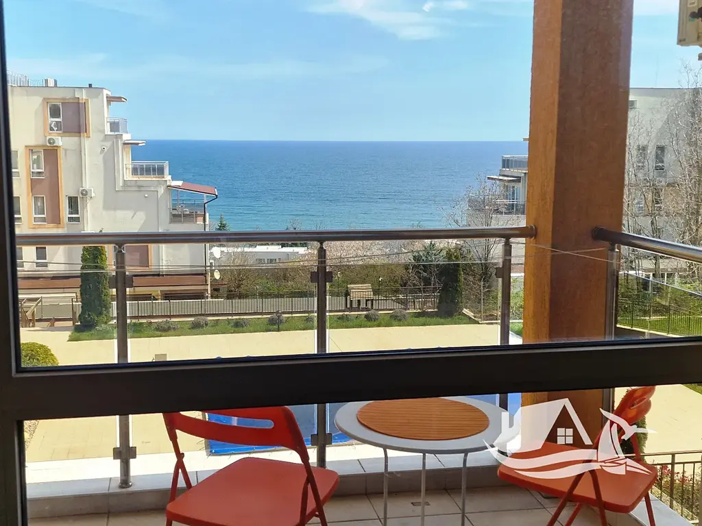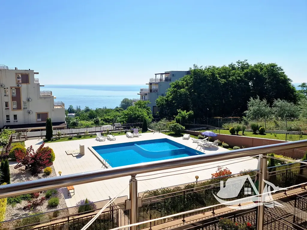 Z balkonu i z oken se otevírá výhled na moře a zeleň v areálu, což vytváří příjemnou kombinaci klidu a prostoru. Koupelna s toaletou je praktická a celý byt je připravený k okamžitému užívání.