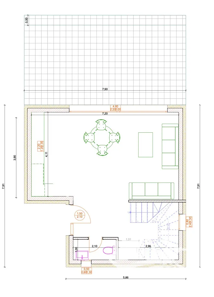 V přízemí se nachází prostorný obývací pokoj s jídelnou a plně vybavenou kuchyní, doplněný o samostatné WC. První patro nabízí dvě ložnice s přístupem na velkou terasu a koupelnu. V suterénu jsou umístěny další čtyři ložnice, koupelna, WC a skladovací prostor.