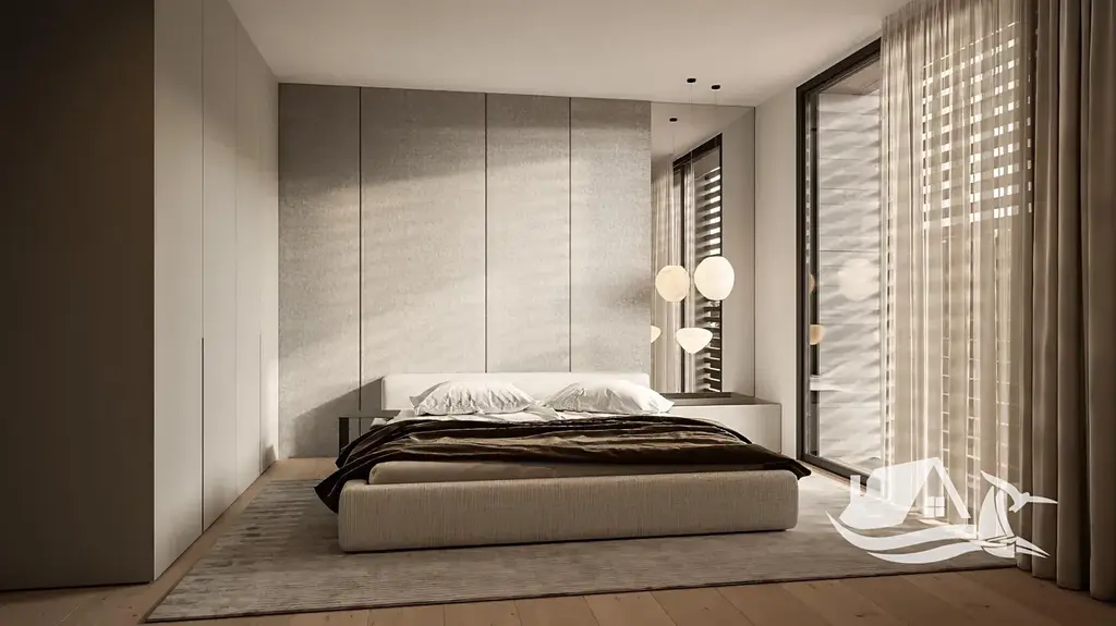 Vila je postavena z prémiových materiálů a působí moderně a nadčasově díky kombinaci pohledového betonu (fairface), kamenných zdí a dřevěného obkladu. Interiér je navržen tak, aby byl vzdušný, otevřený a maximálně komfortní pro každodenní život i rekreaci.