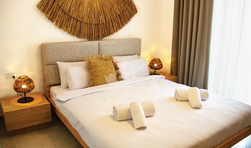 Objevte dokonalé spojení luxusu a pohodlí v tomto elegantním apartmánu se dvěma ložnicemi a zahradou, který je součástí prestižního resortu Sun Valley Seaside.