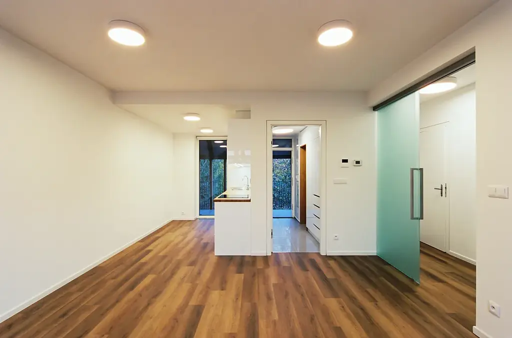 Nabízíme k pronájmu krásný byt v prvním nadzemním podlaží nového bytového domu v Dolních Břežanech. Dům o devíti bytových jednotkách, navržený ateliérem Jakuba Ciglera, se nachází v centrální části obce. Byt je vybaven kuchyňskou linkou s indukční varnou deskou, myčkou, troubou a digestoří, má vlastní plynový kotel, vstupní předsíně jsou vybaveny vestavěnými úložnými prostory. V pokojích jsou položeny vinylové podlahy, v koupelně a předsíni dlažba. Okna jsou vybavena stínícími roletami, terasy zastiňují baldachýny. K bytu náleží komora, přístupná z chodby a terasa. Je možné pronajmout si venkovní parkovací stání.