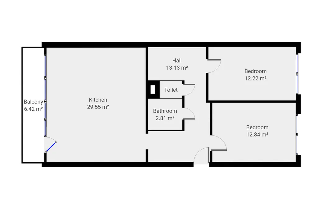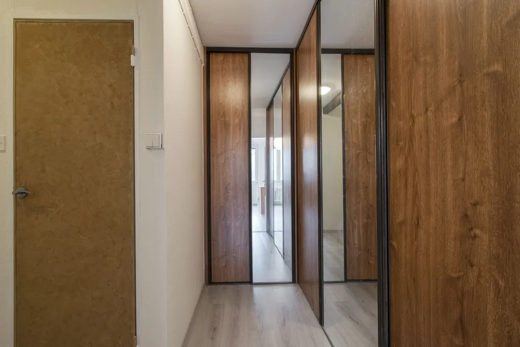Byt se nabízí částečně vybavený. Kuchyňská linka disponuje elektrickou troubou, a sporákem. Vzdušná obývací část je nezařízená. Byt se dále skládá ze dvou ložnic, které jsou nevybavené. V předsíni najdeme praktické úložné skříně. Součástí koupelny je vana a umyvadlo. Toaleta je oddělená.