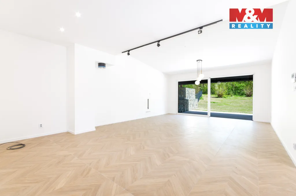 prostorný obývací pokoj s kuch. koutem a vstupem na terasu a zahradu
