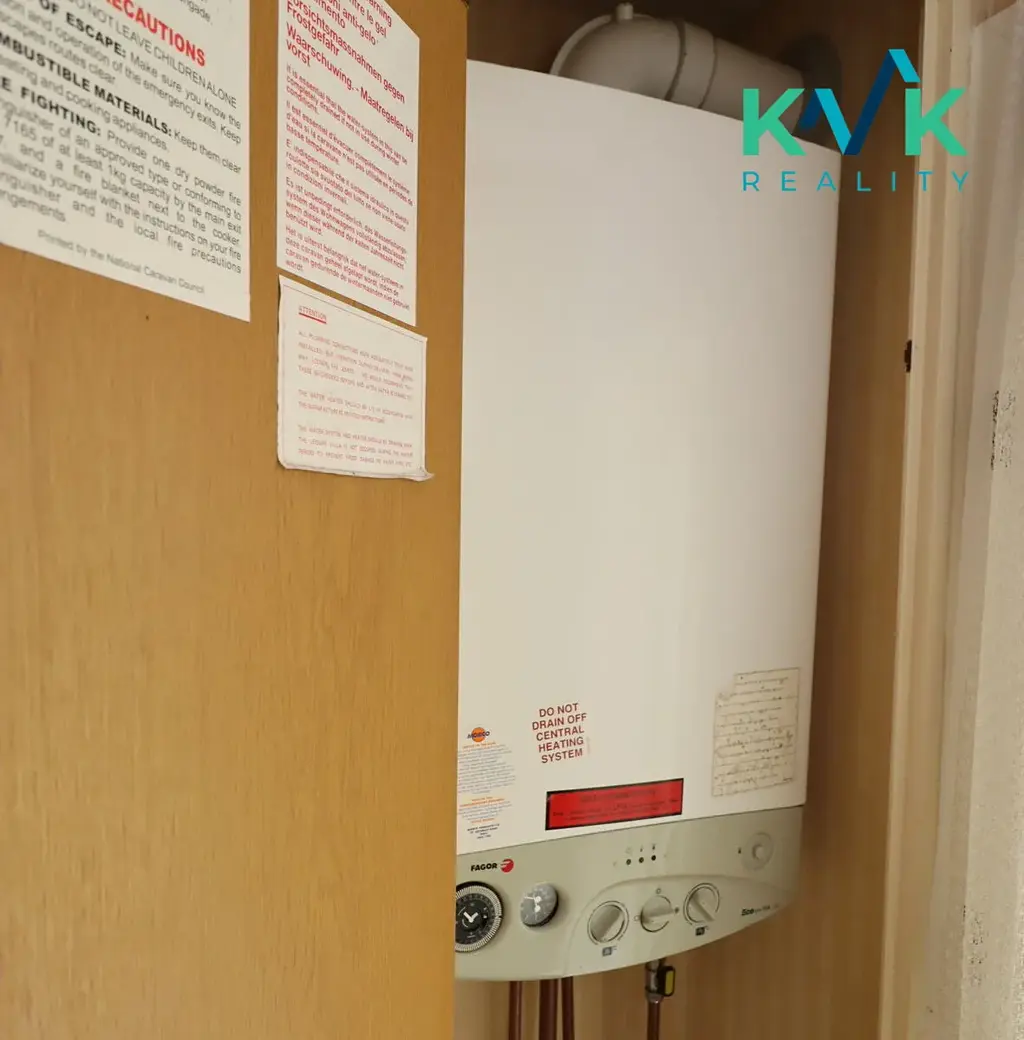 Vytápění je řešeno plynovým topením (propan-butan) s rozvody do všech místností prostřednictvím deskových radiátorů.