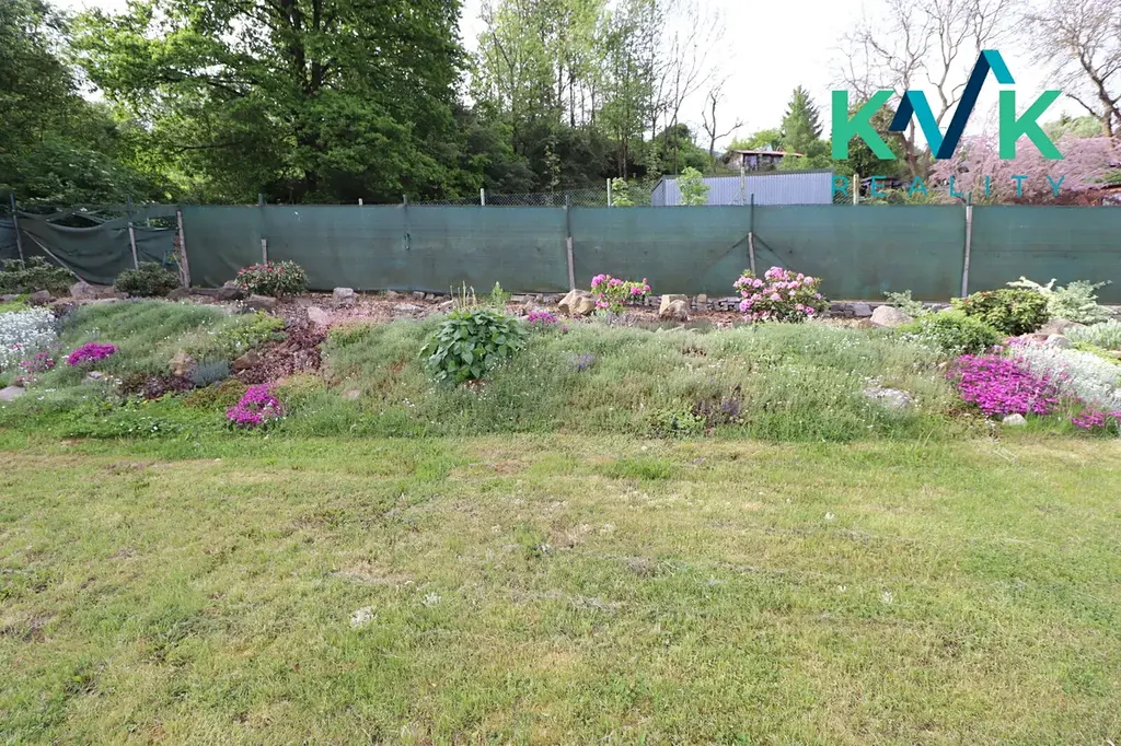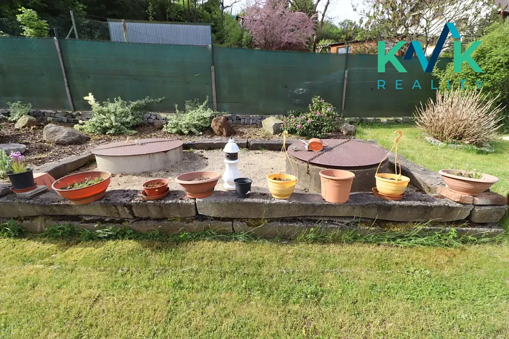 Na pozemku se dále nachází samostatný dřevěný zahradní domek o velikosti 15 m², postavený na betonovém základu. Zahrada je udržovaná, okrasná, doplněná skalkou.