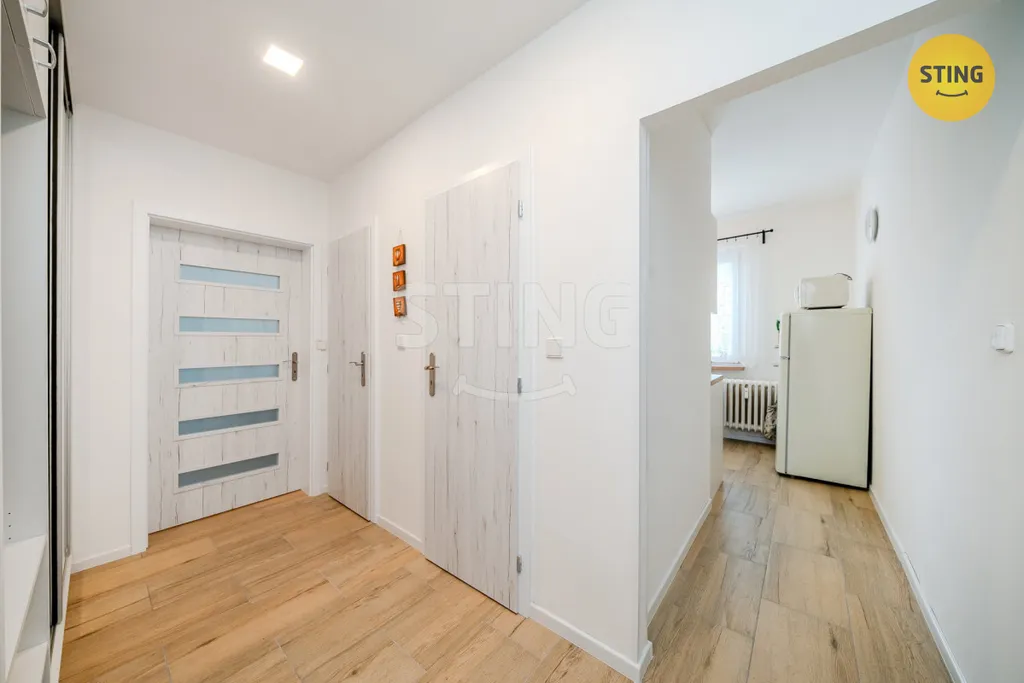 Byt o celkové výměře 52 m² prošel důkladnou a opravdu kompletní rekonstrukcí, která byla realizována současným majitelem pro vlastní potřebu, s důrazem na kvalitu použitých materiálů i detailní zpracování. Součástí rekonstrukce byla nová kuchyňská linka, moderní koupelna, nové podlahy, interiérové dveře i kompletní rozvody elektřiny, vody a odpadů. Interiér je laděn do nadčasového bílo-dřevěného dekoru, který působí svěže a elegantně.
