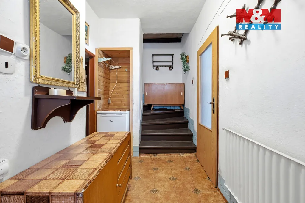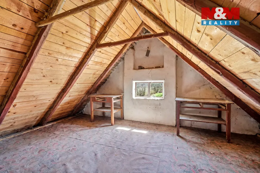 V patře najdete rozsáhlé podkroví připravené k realizaci dle vlastních představ. Dům disponuje i velkým suterénem, který poskytuje dostatek úložných i technických prostor. Bonus představuje nádherný výhled na panorama Krkonoš a rozlehlá zahrada o velikosti přes 2 000 m², ideální pro odpočinek, zahradničení i další využití.