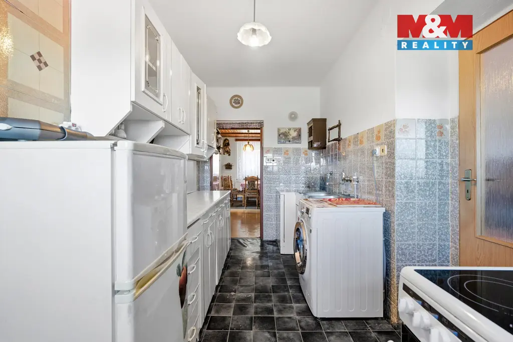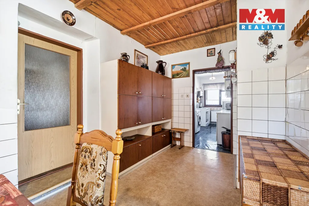 V přízemí se nachází koupelna se sprchovým koutem, samostatné WC, kuchyně s jídelnou, tři obytné pokoje a vstup na prostornou terasu, která láká k posezení i relaxaci. Součástí domu je také garáž, nad níž se nachází bývalá cukrářská dílna.