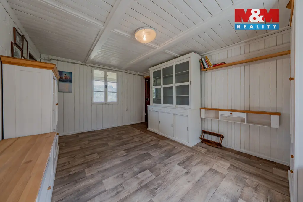 Nabízíme k prodeji dvoupodlažní zařízenou chatu 4+1 se svažitou zahradou o výměře 340 m2. Do chaty je přiveden elektrický proud a obecní vodovod, vytápění řešeno kamny na tuhá paliva, WC suché mimo chatu. Přístup po zpevněné cestě přes cizí pozemky. Nachází se na polosamotě u lesa s výhledem do údolí řeky Bečvy. Doporučujeme prohlídku, více informací u makléře.
