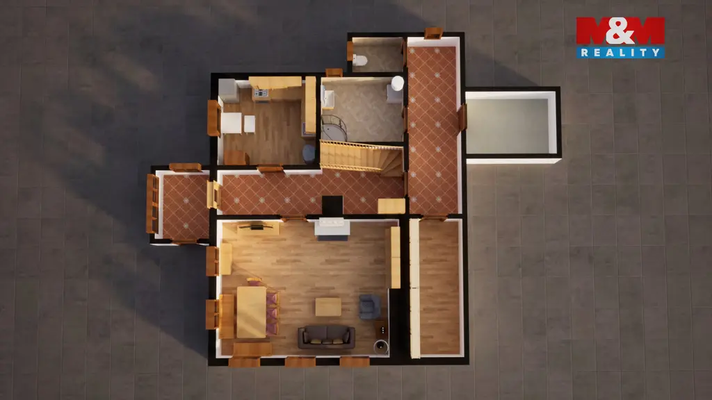 Dům prošel rekonstrukcí a je připraven k okamžitému užívání. V přízemí se nachází obývací pokoj s krbem, kuchyně, koupelna a samostatné WC. V patře jsou dvě světlé ložnice s výhledem do zeleně. Masivní nábytek je součástí prodeje a podtrhuje horský charakter nemovitosti, vyvložkovaný komín navíc zajišťuje bezpečný provoz krbu.
