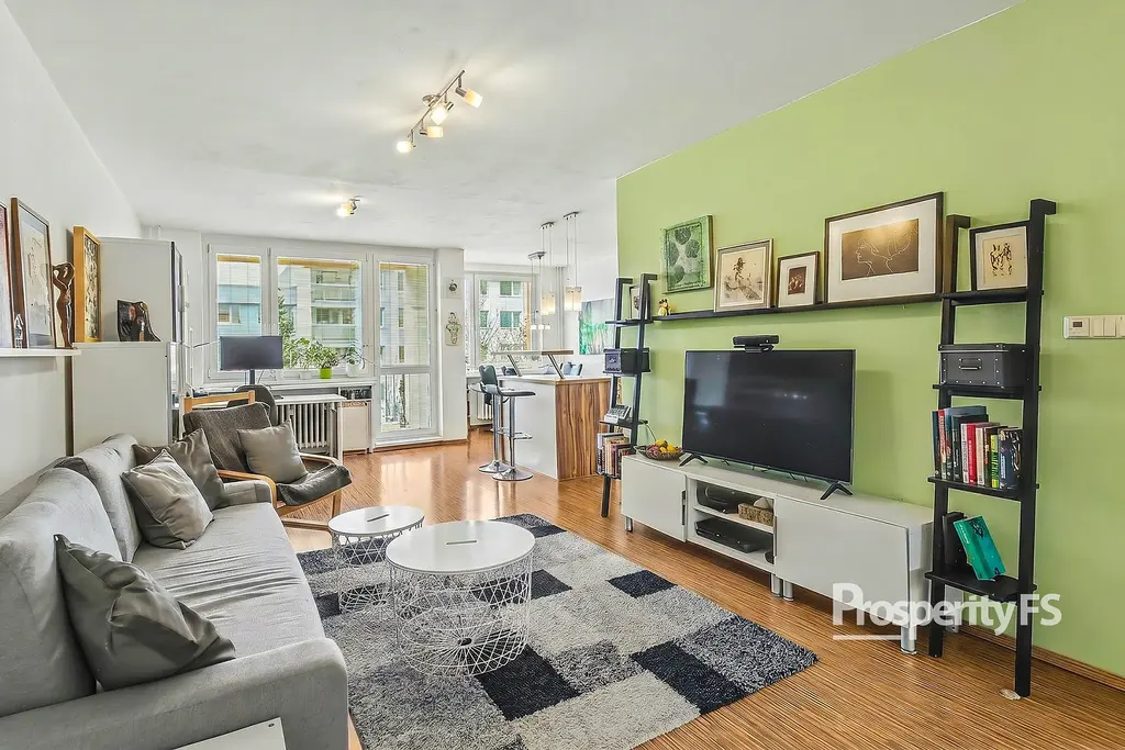 Dostatek denního světla podtrhuje příjemnou atmosféru celého prostoru a přímý vstup na lodžii vytváří plynulé propojení interiéru s exteriérem. Lodžie tak přirozeně rozšiřuje obytnou část a nabízí příjemné zázemí pro odpočinek.