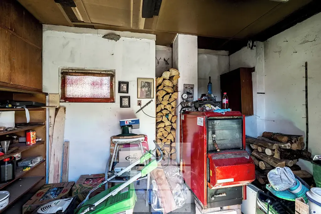 vytápění řešeno kotlem na tuhá paliva (umístěn v dílně)