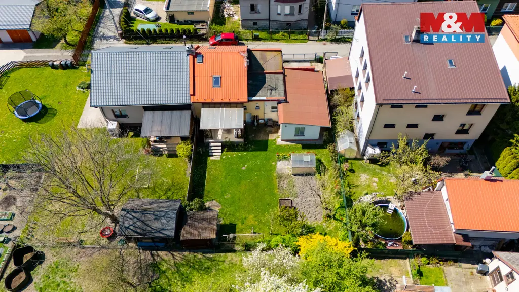 Klidná boční ulice zajišťuje soukromí, zatímco nedaleký dálniční přivaděč drží Ostravu na dosah. Pozemek o výměře 417 m² je prakticky řešený, s udržovanou zahradou a prostornou průchozí garáží, která má krásných 27 m².