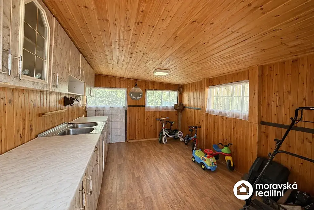 - Stav: Zděná konstrukce, osazena plastovými okny, připravena na trvalý provoz.