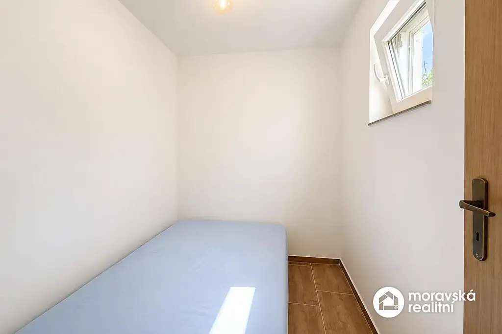 - Dispozice: Pokoj (cca 14 m2), sklad (cca 10 m2), sklep (cca 11,5m2) a prostorná pergola (16 m²).
