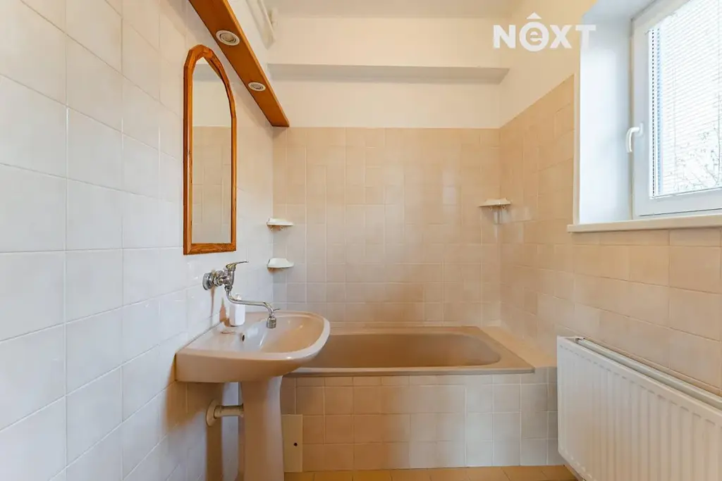 Dům je napojen na veškeré inženýrské sítě – obecní vodovod, kanalizaci i plyn. Vytápění zajišťuje plynový kotel z roku 2023, ohřev vody plynová karma.