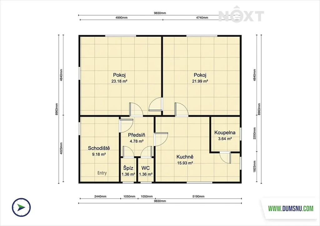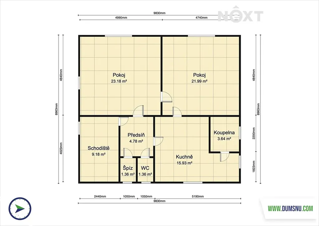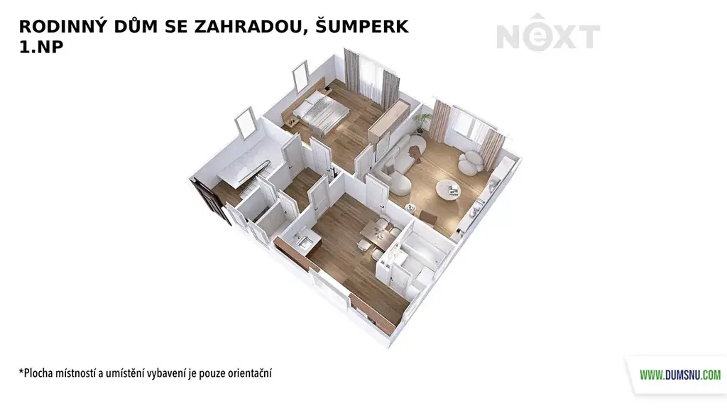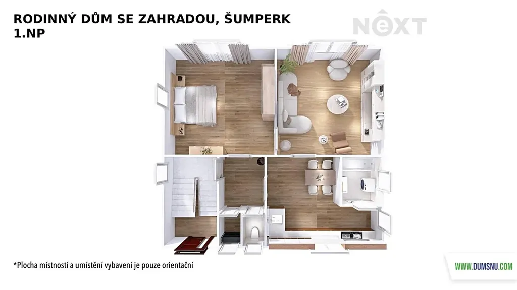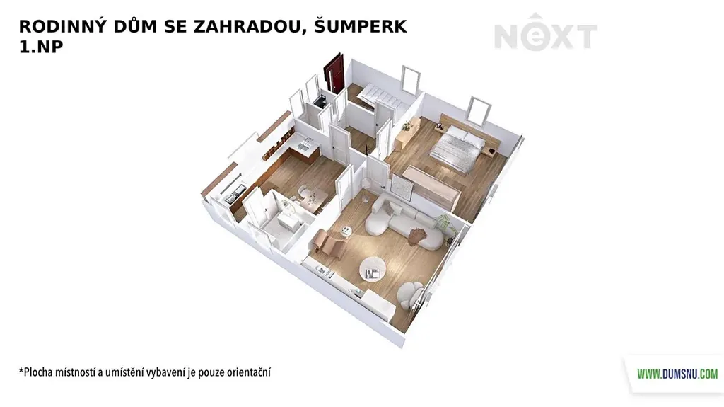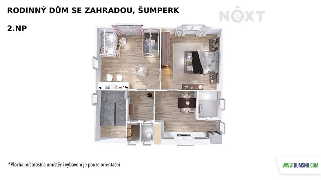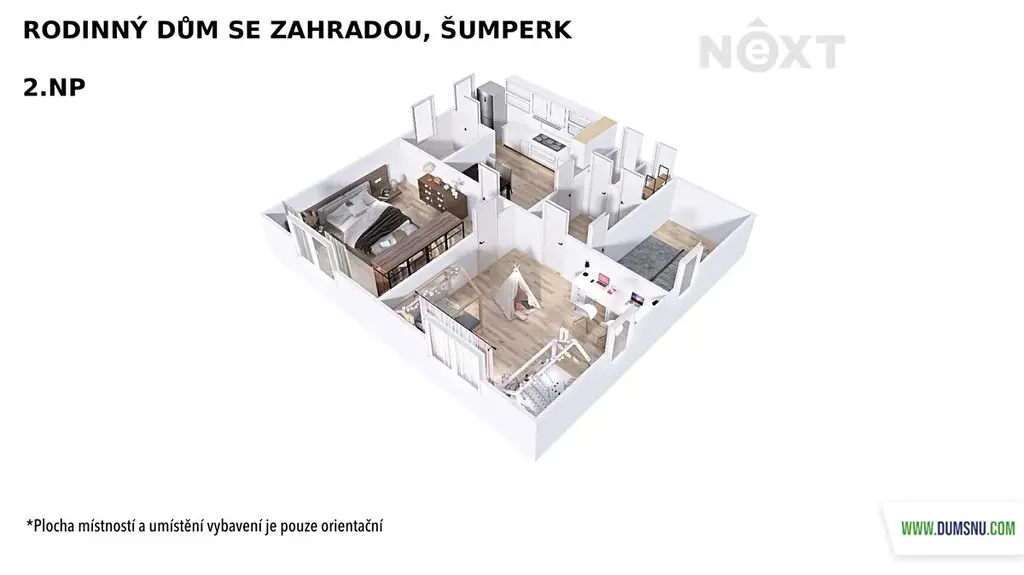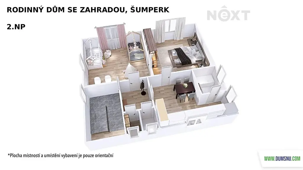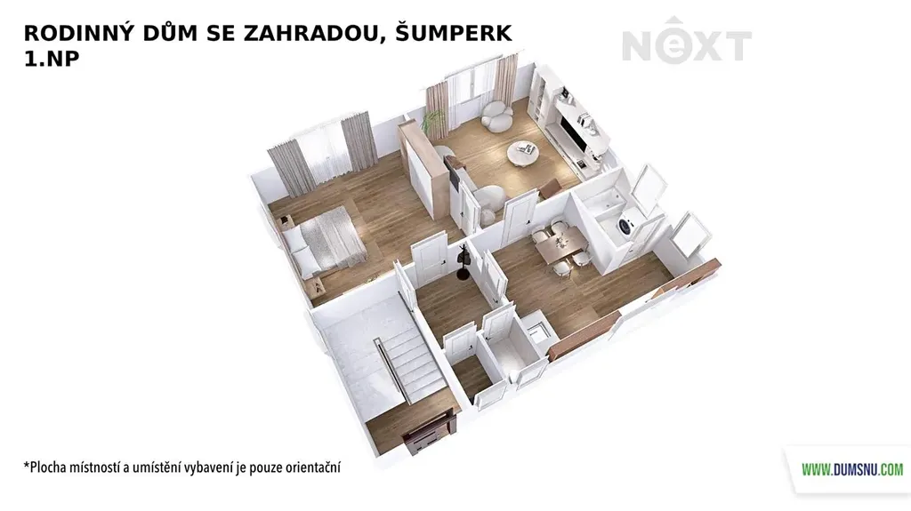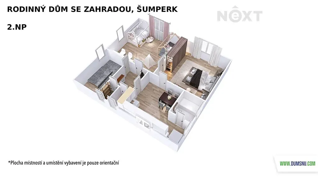 Velkým benefitem je půda o výměře 90 m² se zateplenou podlahou, kde si můžete vybudovat další obytné místnosti dle vlastních představ.