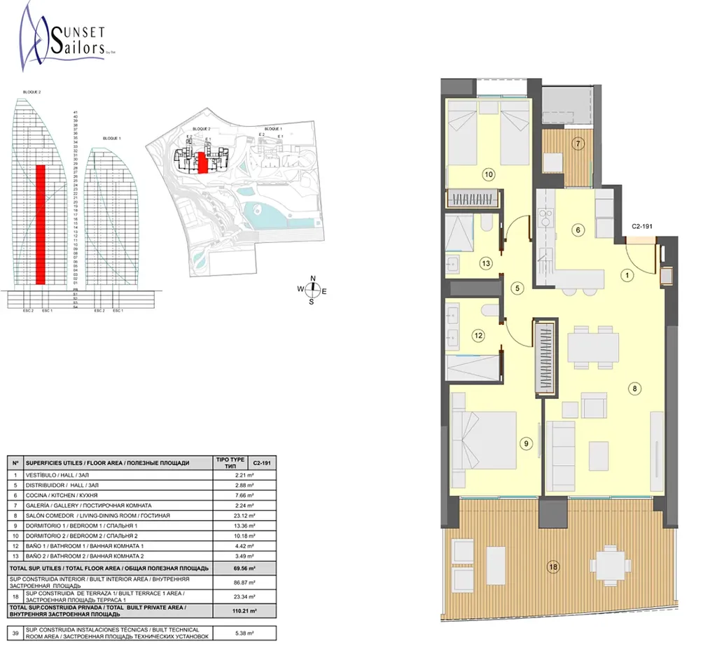 Nabízíme k prodeji moderní apartmán v prestižním rezidenčním projektu SUNSET SAILORS. Jedná se o již stojící projekt s posledními volnými byty v jedné z nejikoničtějších výškových rezidencí v Benidormu, která se nachází v privilegované lokalitě pláže Poniente, pouhých 50 metrů od moře. Ceny bytů v projektu začínají od 830 000 €.